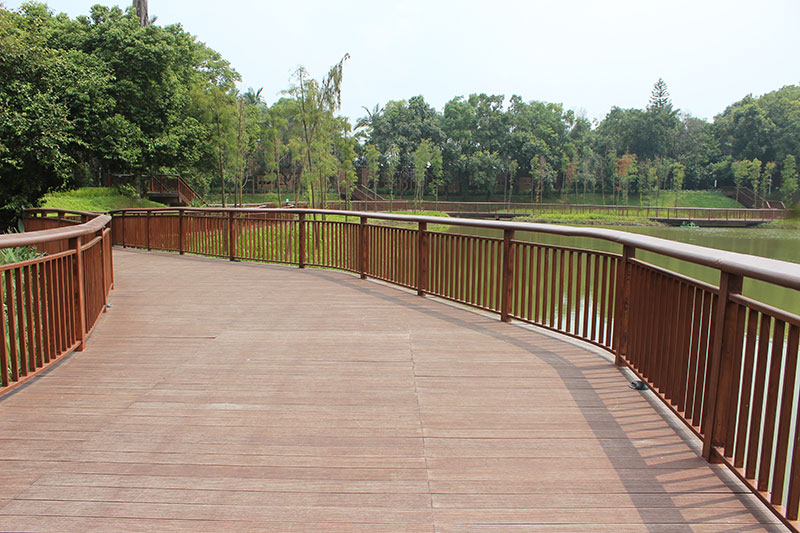 深圳龍崗平湖生態(tài)園位于平湖街道上木古社區(qū),是甘坑水庫(kù)和苗坑水庫(kù)之間的原山體綠林,其水體亦是平湖唯一的保障性自有生活水源地,園內(nèi)集聚了豐富的自然原生態(tài)景觀。根據(jù)規(guī)劃,2020年對(duì)平湖生態(tài)園的碧道和林相進(jìn)行了升級(jí)改造。碧道根據(jù)親水距離和人們產(chǎn)生的活動(dòng)不同將園路系統(tǒng)分為親水漫步道 、健身慢跑道、運(yùn)動(dòng)騎行道等三條不同道路,并配套建設(shè)了觀水觀鳥(niǎo)棧道等設(shè)施滿足不同年齡階段市民的休閑需求。這些觀水觀鳥(niǎo)棧道,親水平臺(tái)鋪裝的是桃花江戶外竹木地板,不僅美觀大方,耐磨防滑,還耐候耐腐,綠色環(huán)保,恰好符合水源水質(zhì)保護(hù),綠色節(jié)約的理念。升級(jí)后的碧道 ,不僅延長(zhǎng)了整條碧道的長(zhǎng)度,還拓展了周邊市民的游玩空間,讓這風(fēng)景如畫(huà)、空氣清新的純天然生態(tài)氧吧更錦上添花,或騎行或散步,都愜意無(wú)比。