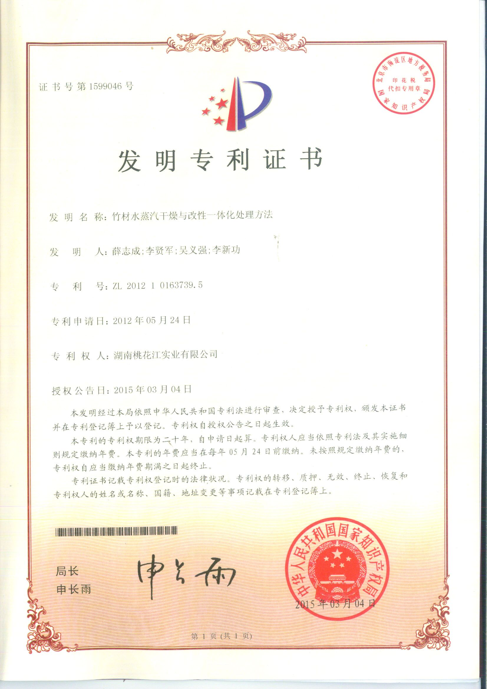 2006年,桃花江經(jīng)過多年研究,逐漸掌握了通過增加竹子的密度,同時經(jīng)過炭化和防腐的新型竹材加工技術(shù),成功解決了竹制材料不能廣泛運用于戶外的世界性難題,獲得了竹制材料研究方面的巨大的突破。該項技術(shù)完美的解決了竹材戶外運用上的防腐性、耐磨性和穩(wěn)定性問題。這種技術(shù)被稱為“高炭防腐技術(shù)”,2006年這項技術(shù)已經(jīng)申請發(fā)明專利,是我國戶外竹材研究領(lǐng)域的首個個發(fā)明專利,故桃花江竹材科技被譽為是我國竹材領(lǐng)域“高炭防腐的發(fā)明者”。此后桃花江竹材科技進行了大量的相關(guān)的實驗室檢測和實際測試,結(jié)果證明,高炭防腐技術(shù)是目前唯一可以讓竹子戶外應(yīng)用的解決辦法。未經(jīng)處理過的竹子,耐久性等級為5級(EN350標(biāo)準(zhǔn)),耐久性不夠。經(jīng)過熱高炭防腐技術(shù)處理后的竹子,尺寸可進行定制,材料穩(wěn)定性提高了50%左右。耐久性也從原來的5級提高到最高等級1級(EN350-1標(biāo)準(zhǔn)1級,ENV807標(biāo)準(zhǔn)1級,EN113標(biāo)準(zhǔn)1級)經(jīng)過熱處理的竹子同時可以有效地抵抗淺表真菌。(EN152標(biāo)準(zhǔn)0級)桃花江高炭防腐戶外地板,使用風(fēng)險等級達到4級(標(biāo)準(zhǔn)EN335)是市場上唯一達到此標(biāo)準(zhǔn)的竹產(chǎn)品。