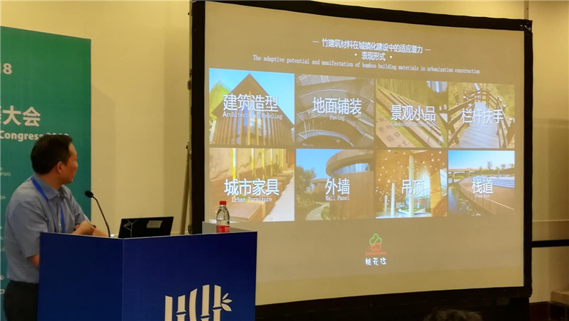 薛董以《竹建筑材料及其在城鎮(zhèn)化過程中的應(yīng)用潛力》為題,圍繞中國工業(yè)化以來企業(yè)運用現(xiàn)代工藝技術(shù)及設(shè)備研發(fā)新的竹材產(chǎn)品,闡述在我國城鎮(zhèn)化建設(shè)過程中竹材新產(chǎn)品在室內(nèi)外的運用以及未來的巨大潛力,結(jié)合豐富的案例展示了中國竹材產(chǎn)品的應(yīng)用成果及竹材應(yīng)用的發(fā)展趨勢。薛董的演講得到了來自世界各地的科研院所、高校、企業(yè)界的100多位代表的廣泛關(guān)注。