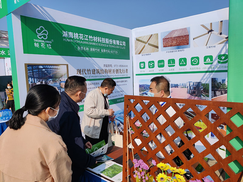 積極響應參與此次活動。領導嘉賓在參觀展覽時,被桃花江竹材的綠色環(huán)保竹材產(chǎn)品吸引,紛紛駐足詳細了解,公司現(xiàn)場工作人員進行熱情接待,耐心講解,給現(xiàn)場嘉賓們留下了深刻印象。