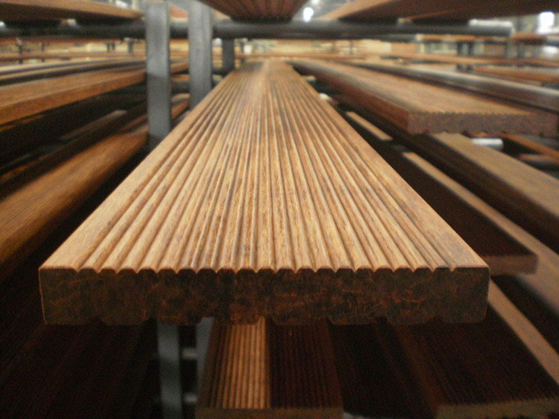 戶外高耐竹木材料是將竹子順勢切成較細的長纖維,經(jīng)過脫水,高溫高壓而成,具有耐磨、耐腐、穩(wěn)定性高的新型高科技戶外用材。同等大小竹材的抗壓強度是一般木材的2倍,抗拉強度是一般木材的8-10倍,適用于多種戶外環(huán)境的地面、墻面裝飾,具有高強的耐磨型和耐腐蝕性,還有抗白蟻、防火阻燃、高硬度,是極佳的戶外材料。優(yōu)良的尺寸,高穩(wěn)定性、高抗壓強度、高密度,使其能輕松應(yīng)對惡劣的戶外濕熱、干冷等特殊環(huán)境。由于此類材料起步較晚,因此成本偏高,在制作過程中,不會添加任何著色劑,強調(diào)竹子天然的環(huán)保性,因而其顏色單一,一般以棕色,咖啡色為主。
